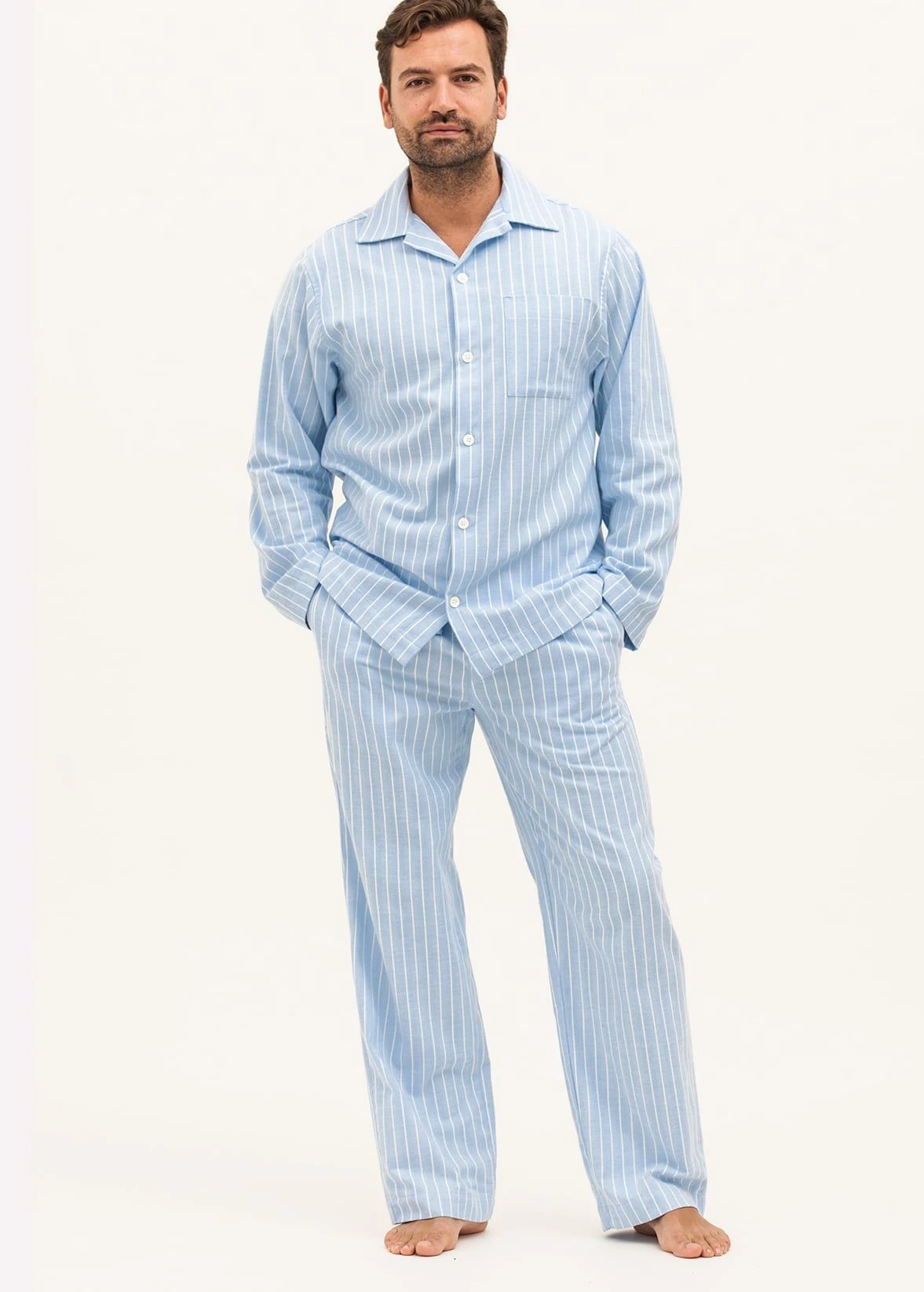 Introducing a new blue brushed cotton herringbone fabric with a fine white stripe. These classic brushed cotton pyjamas are available in our regular and tall leg lengths. The tall sizes gives you two extra inches on the leg length and extra inches on the sleeves and jacket length. This fabric can also be found in the men’s nightshirt, pyjama bottoms, shorts and dressing gown collections. We also have matching items in the women’s and children’s ranges for those looking for matching family nightwear.