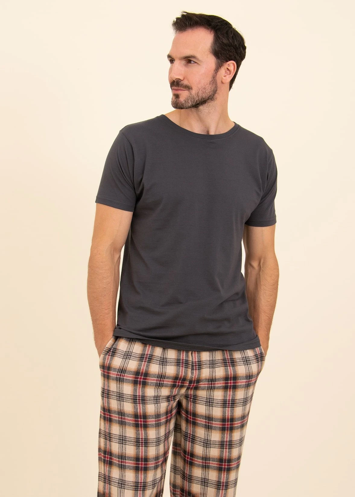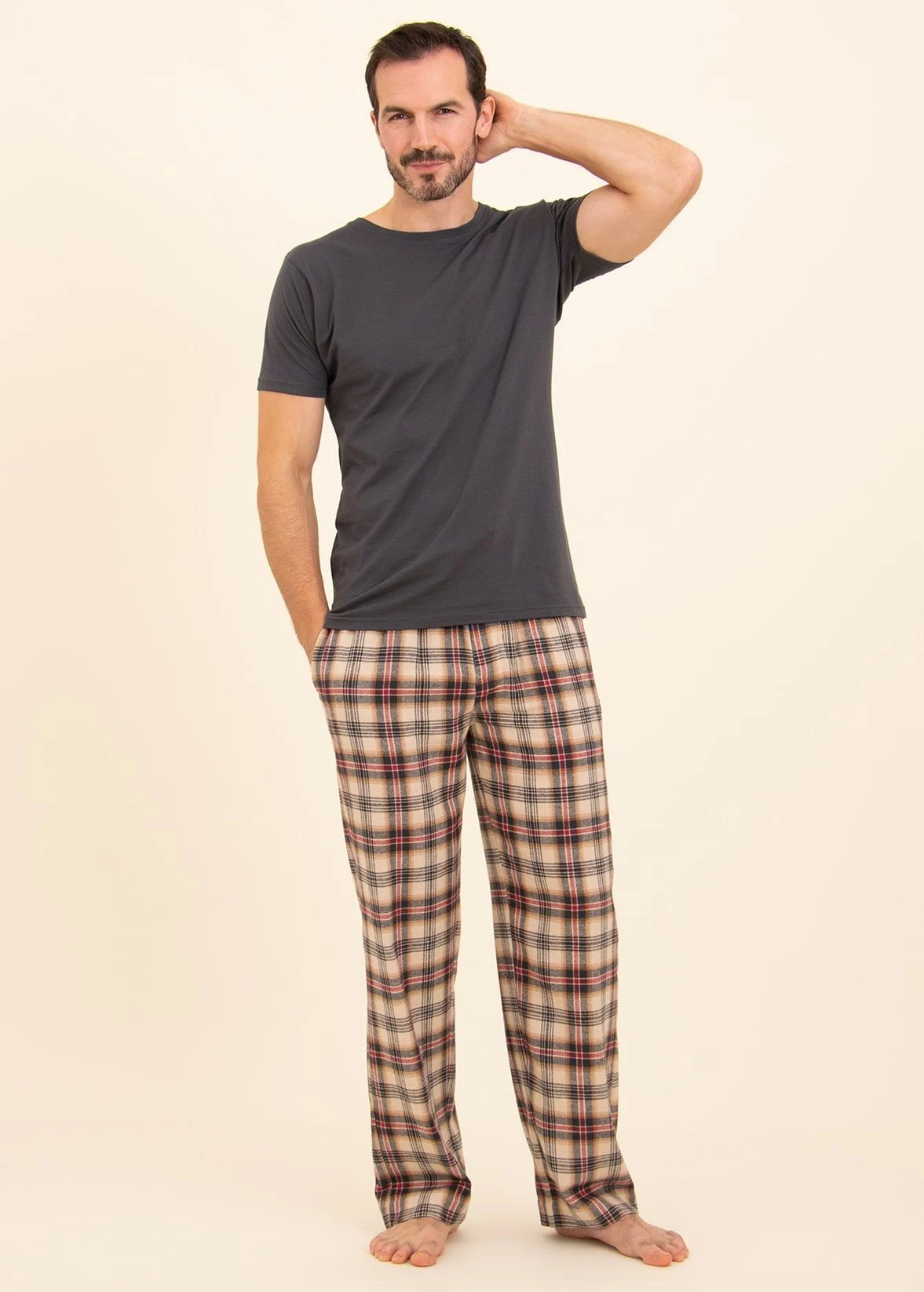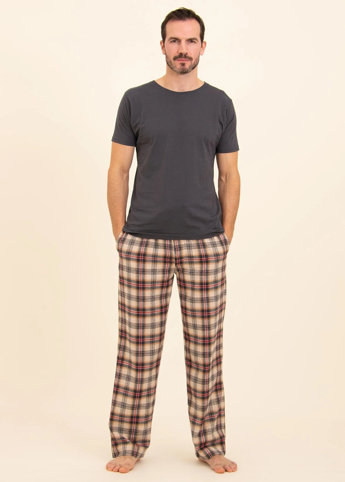 Classic straight leg pyjama bottoms in our cosiest fabric yet. This cream, charcoal grey and red check is our heaviest fabric in the men’s collection so perfect for those looking for something a little warmer. Available in regular and tall sizes. Matching women’s and children’s pyjama bottoms available.