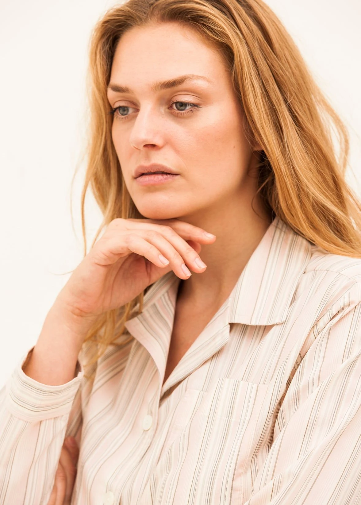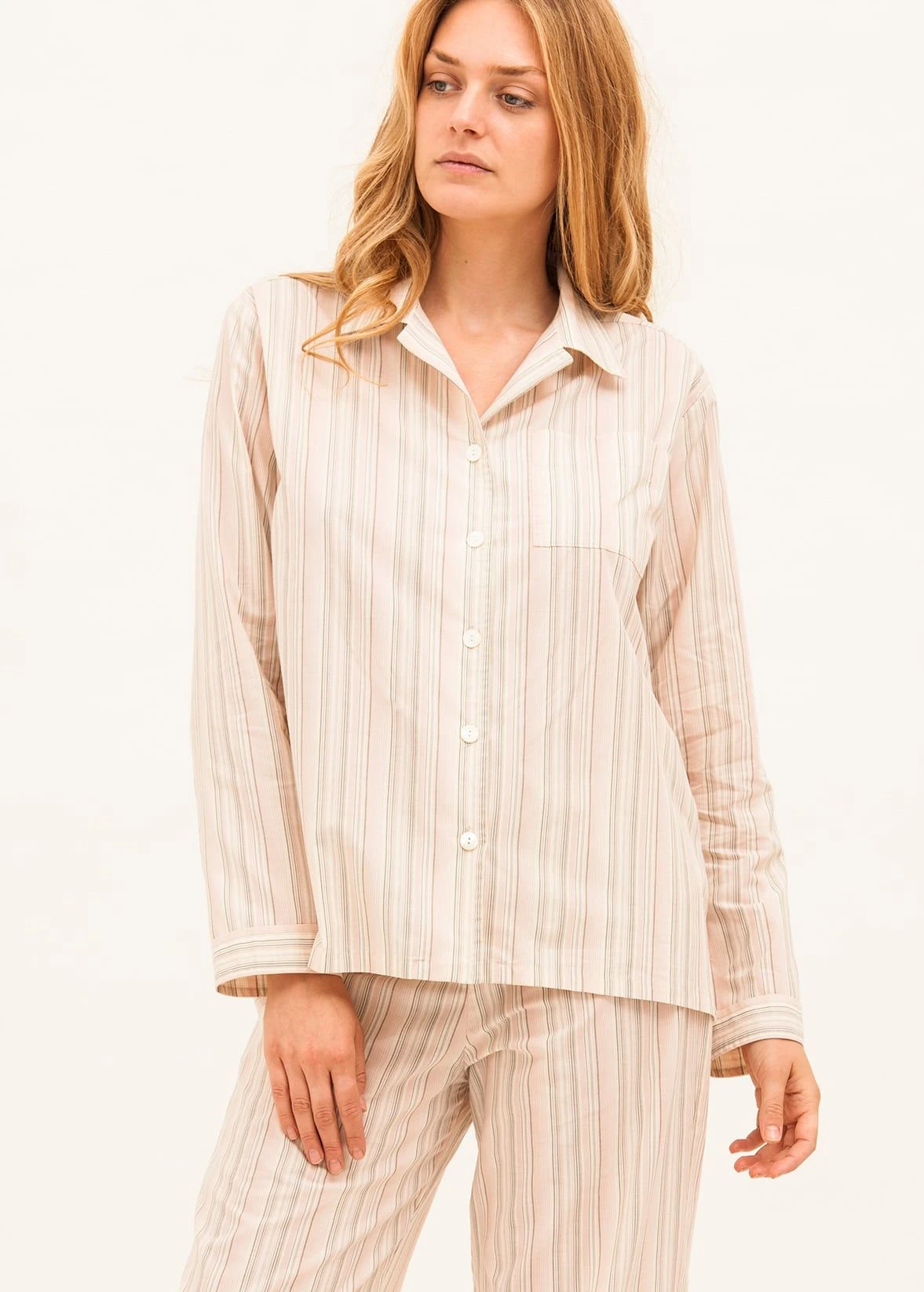 Gorgeous lightweight pyjamas in a dusty pink stripe. Look closely and you will see the stunning detail in this stripe. Available in tall and extra tall leg lengths so no-one is missing out on these. Made in Britain like everything in our collection. Perfect for summer or for those who prefer a lighter weight cotton. Matching pj trousers, nightshirt and shorts available.