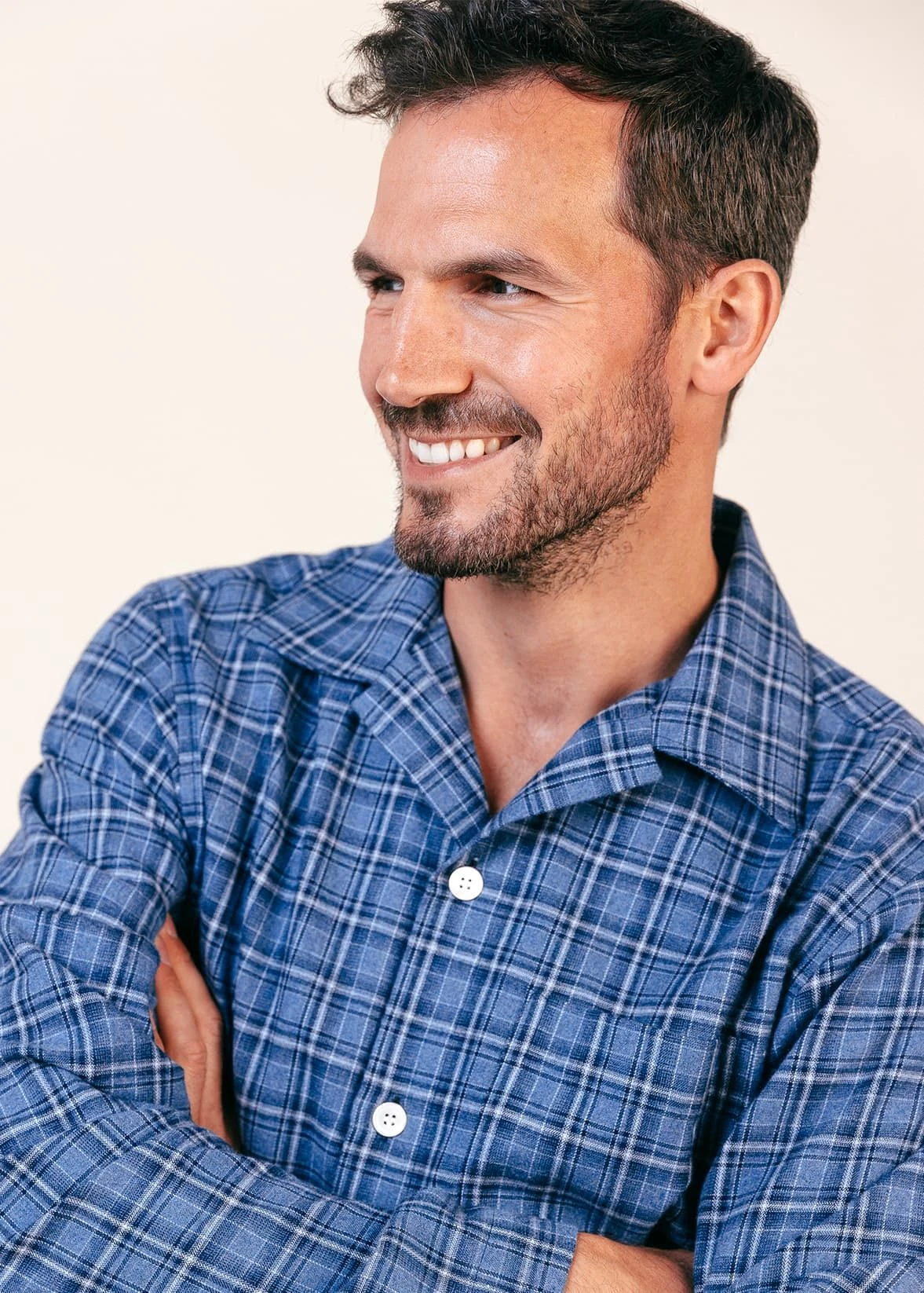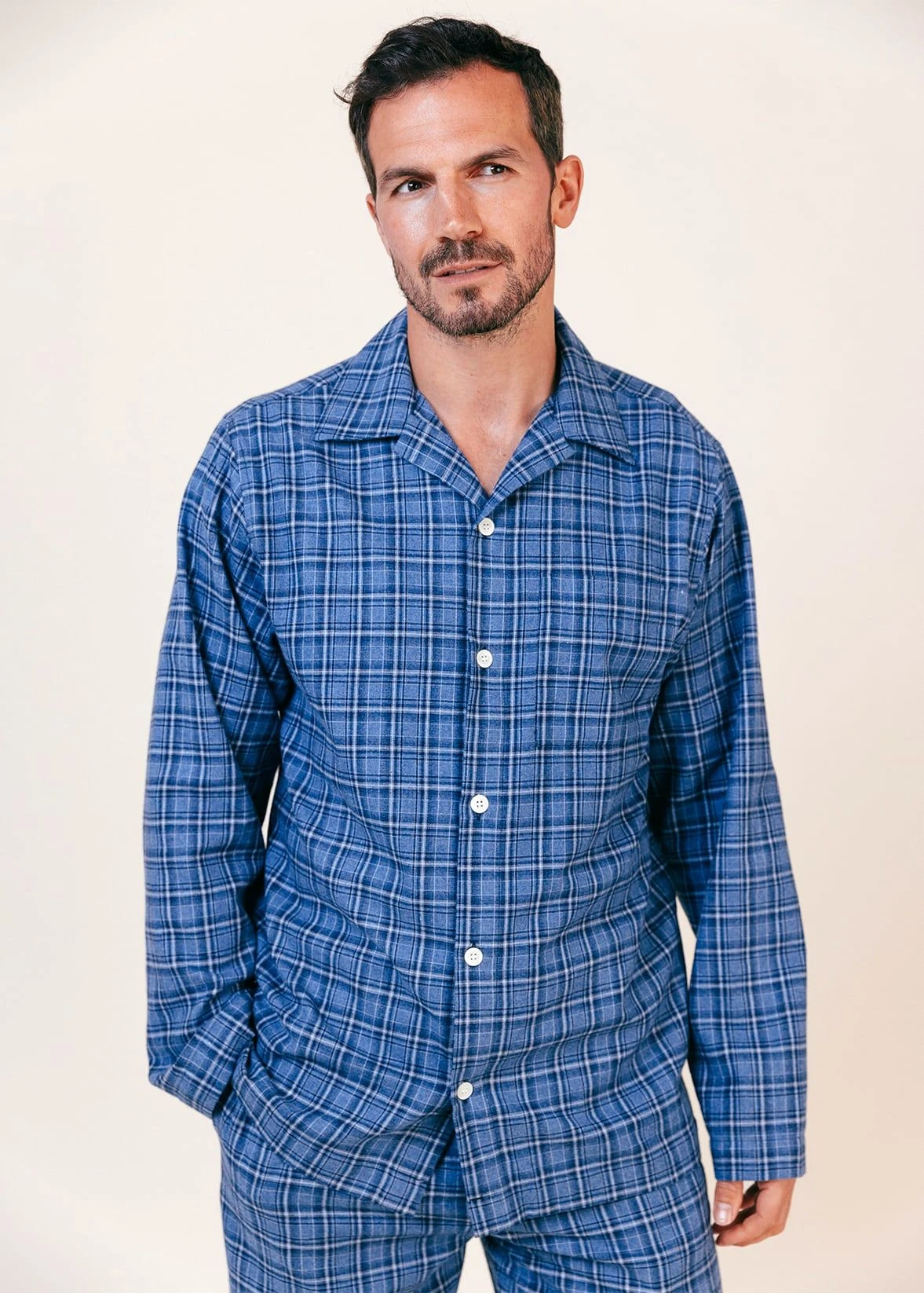 Another addition to our men’s organic cotton pyjama range. Supremely soft brushed cotton in a classic blue check. Available in regular and tall sizes. Other matching items available including pyjama bottoms for those not requiring a jacket.