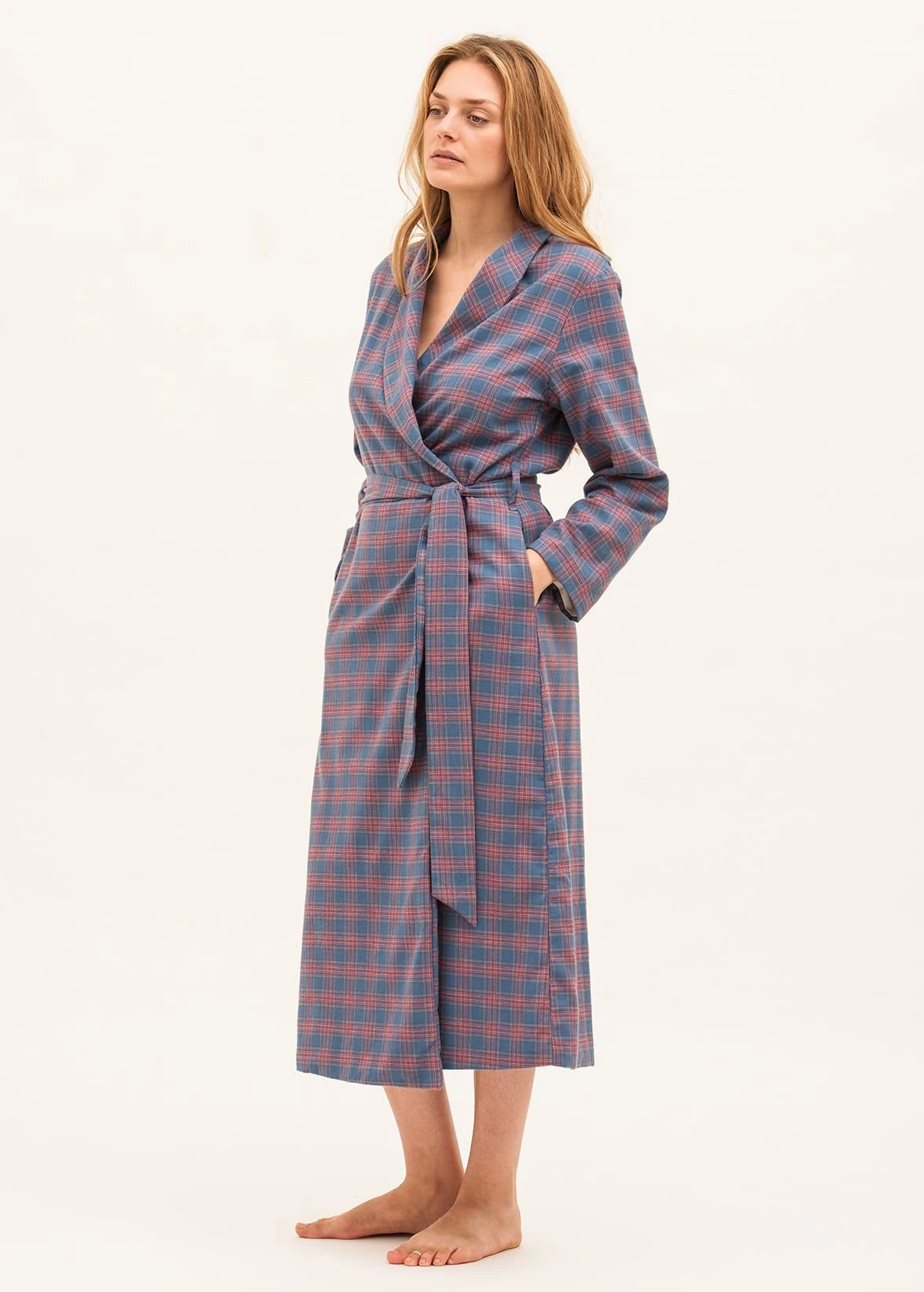 Another addition to our women’s luxury dressing gown collection. This gorgeous check is woven with 20% wool giving it a wonderfully soft and warm handle. Fully lined in a lightweight cream cotton and finished with a feminine shawl collar, a removable tie around the waist and two side pockets. A perfect winter dressing gown to ward off those cold temperatures. Complete the look with a pair of our toasty alpaca bed socks.