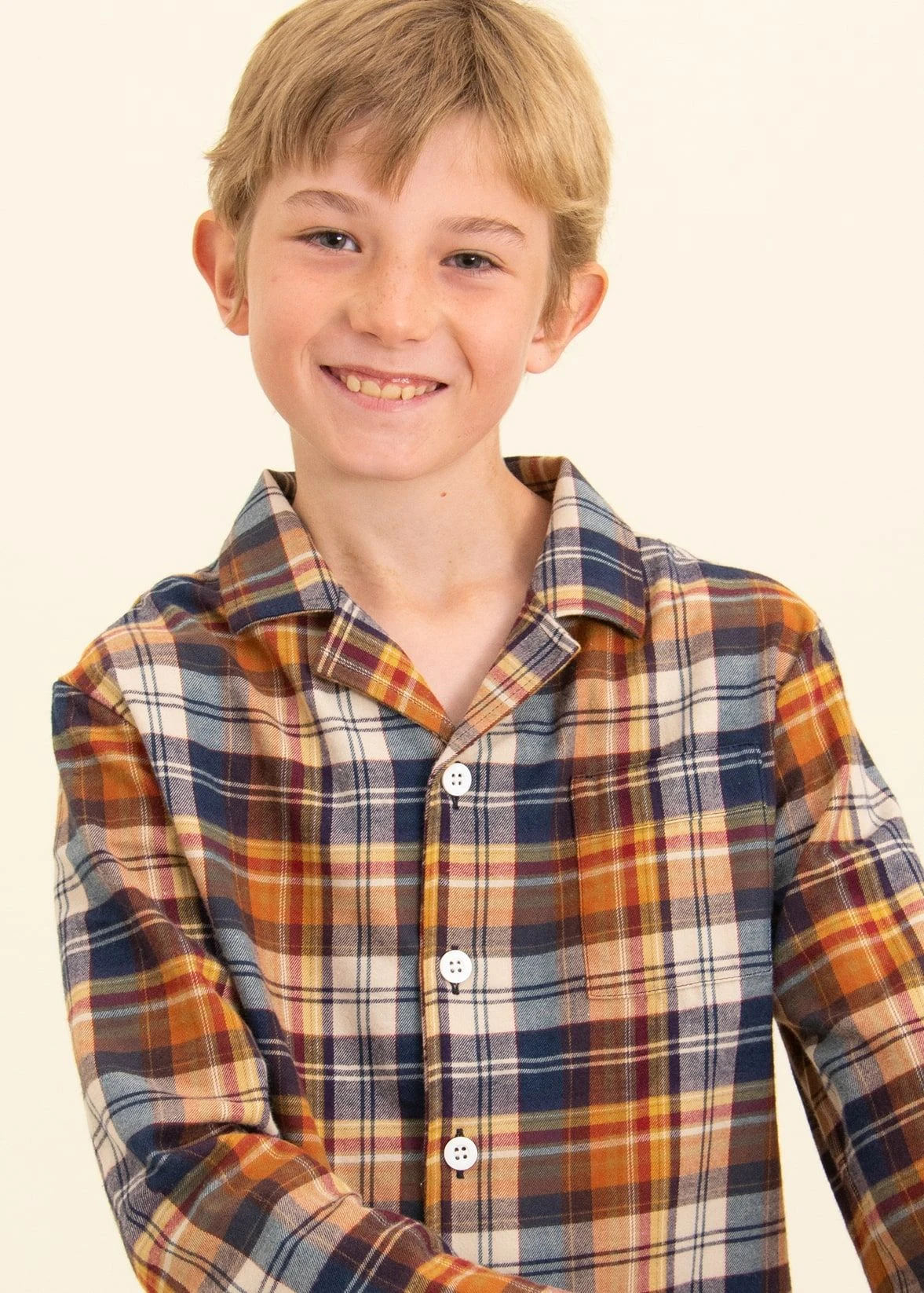 Another addition to our children’s organic cotton collection. Traditional brushed cotton pyjamas for boys or girls. Trousers are also sold separately for 7-14yr olds. This cosy autumnal check is also available in the men’s and women’s collections for those looking for matching family pyjamas.
