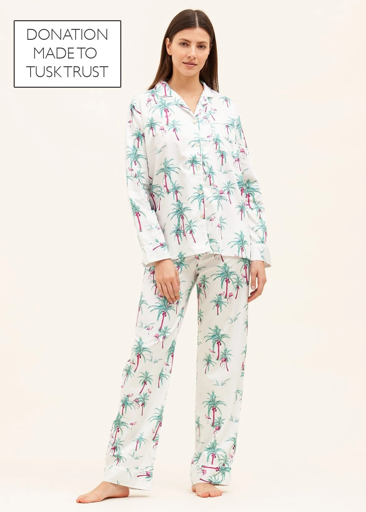 For every pair of Flamingo pyjamas you buy, we will be donating £10 to Tusk Trust – a pioneering organisation that invests in the future of Africa; protecting wildlife, supporting communities and promoting education. To date our Tusk nightwear collection has raised more than £7500 for Tusk Trust.