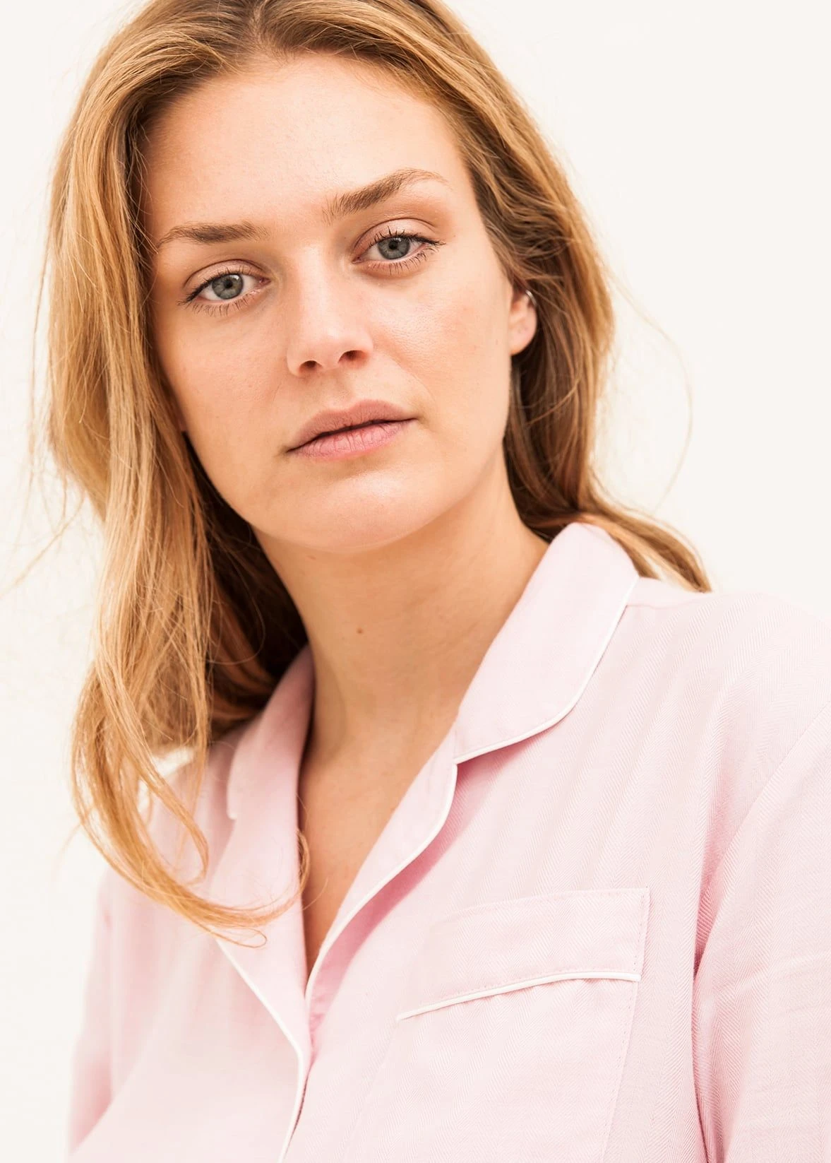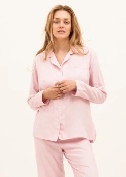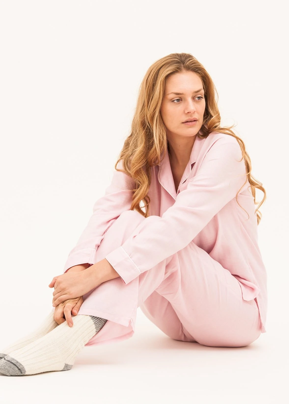 Another choice for those looking for the ultimate luxury! These gorgeous pink herringbone pyjamas are made from an ultra soft cashmere cotton blend. This fabric has a wonderful floaty drape – warm but lightweight. Finished with pretty cream piping on the jacket. Complete the look with a pair of our cosy alpaca bed socks.