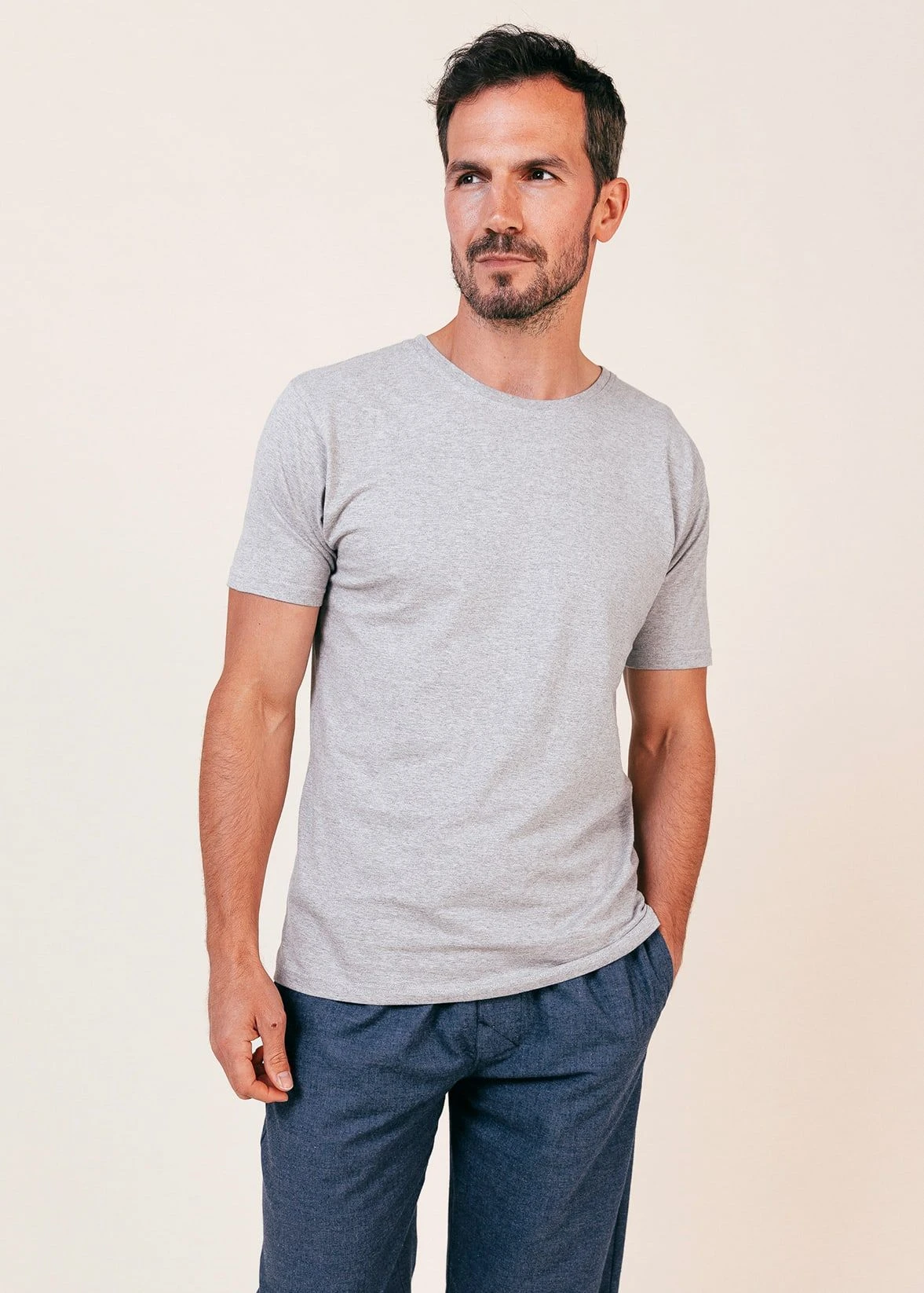 A bestseller in the men’s nightshirts and gowns, this plain blue herringbone is now available as pyjama bottoms. Classic straight leg style, finished with two sides pockets and a single button fly. Pair them with one of our organic cotton t-shirts. Made in Britain like all of our nightwear.