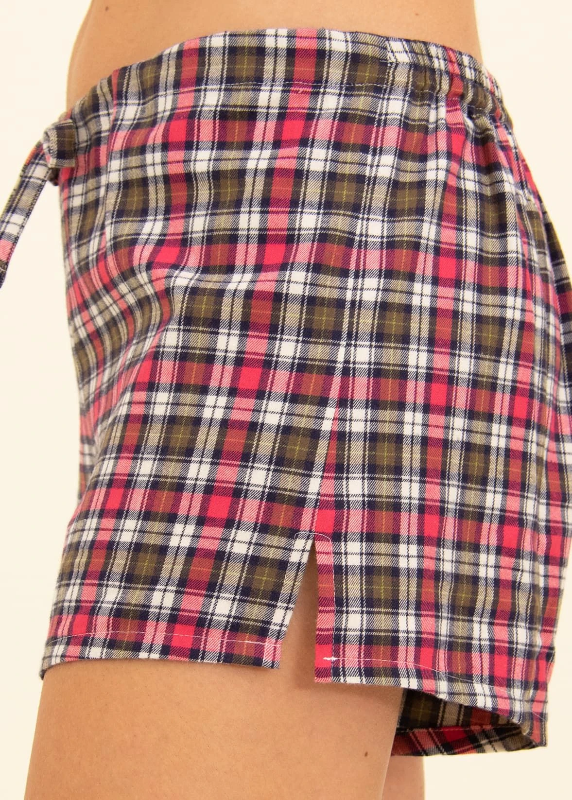 An old favourite is back but this time in an organic cotton. Flattering brushed cotton pyjama shorts. Pair this cosy pink and mushroom check with one of our dusty pink or charcoal bamboo jersey vest tops. Other matching nightwear items available in the women’s, men’s and 11-14yrs collections.