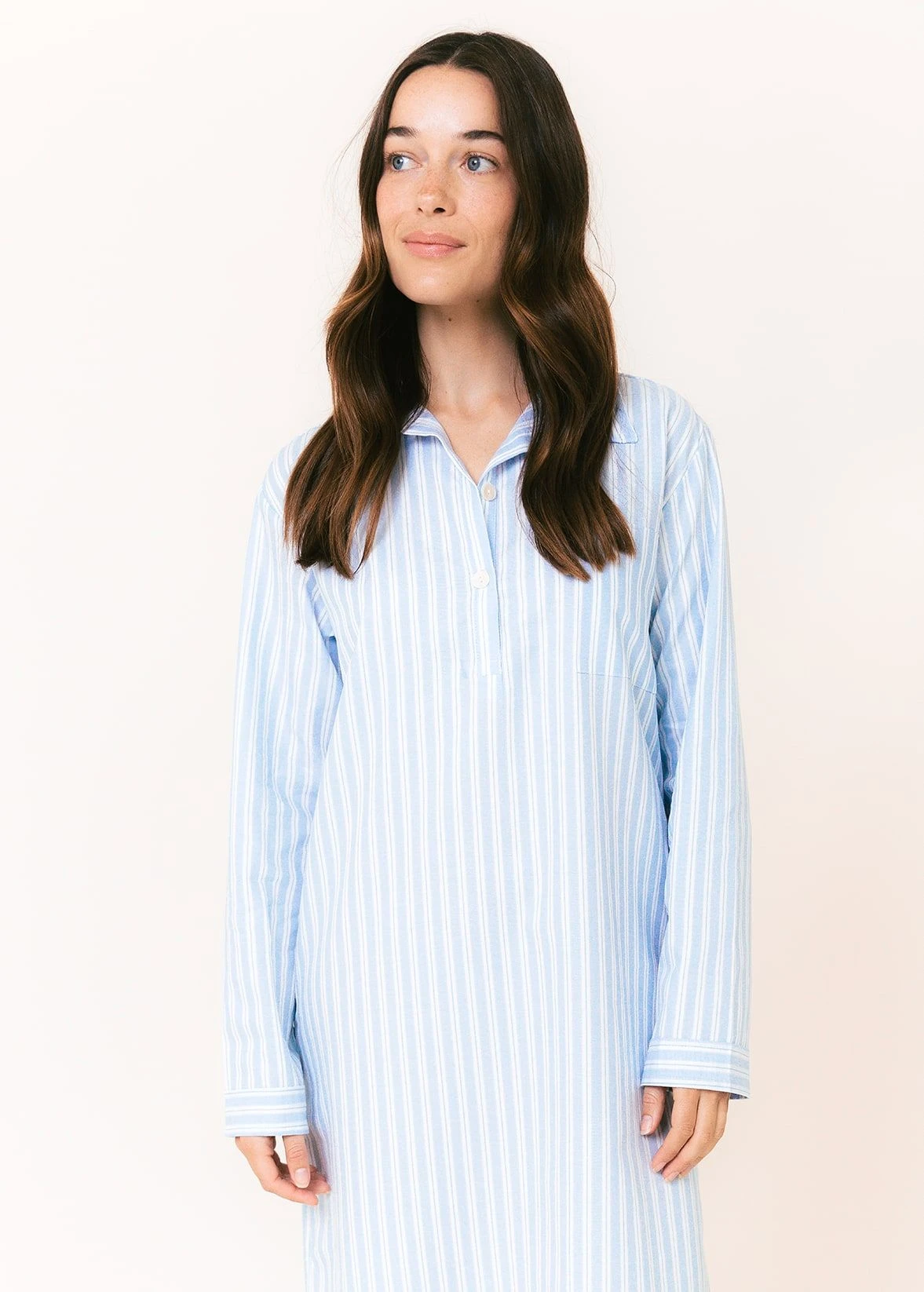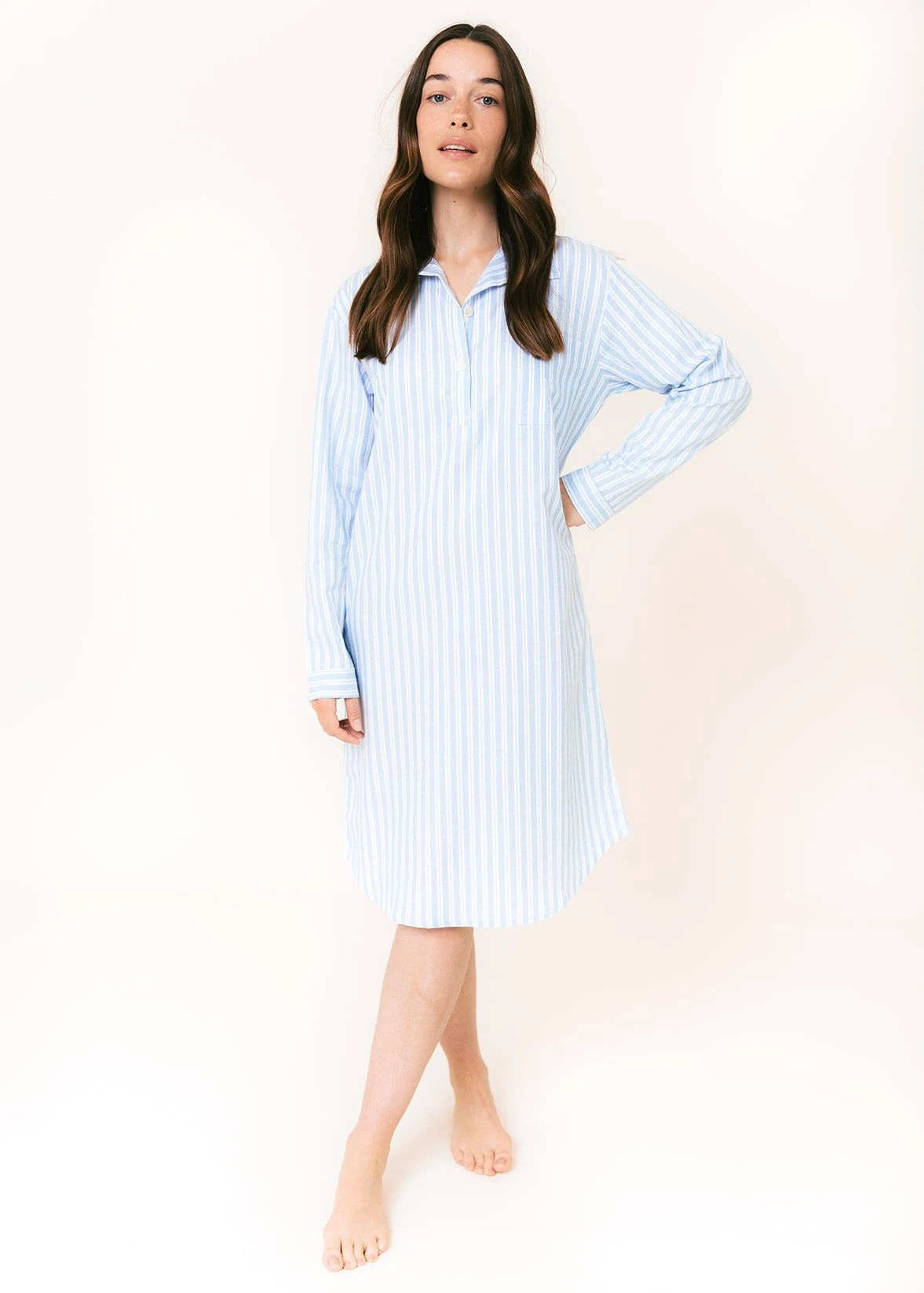 88cm/100cm measured down centre back from base of collar to hem. (Model height 5’8″, UK 8 – wearing size S). Our nightshirts do come up slightly smaller than our pyjamas so we suggest going up a size.