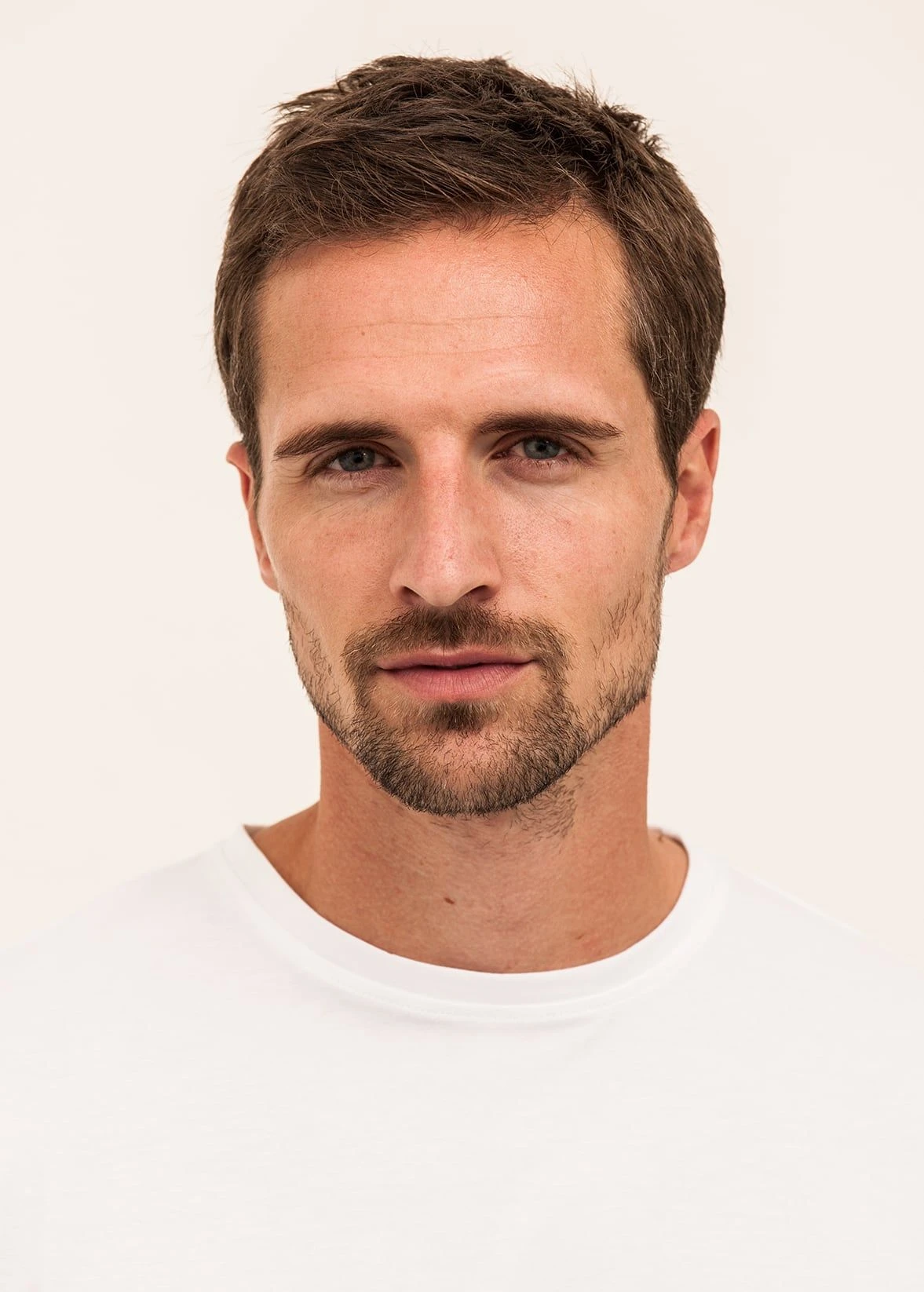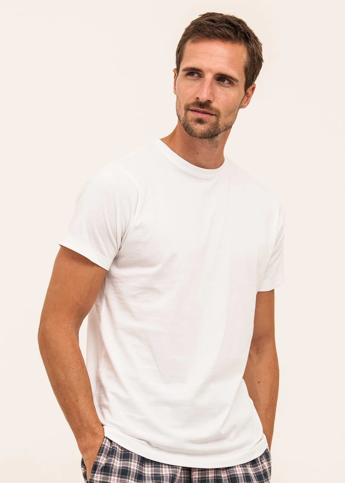 Men’s organic cotton t-shirts in plain white. The luxury mid-weight jersey is knitted in Britain using the highest quality organic yarns. The resulting soft fabric is long lasting, gives a robust fit and is a perfect weight to wear throughout the seasons. Available in navy, light grey marl, charcoal grey and white.